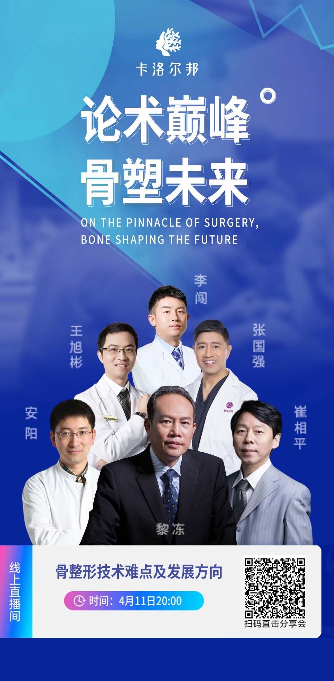 本届骨整形技术周线上分享会围绕“论述巅峰,骨塑未来”的核心主题,展开5场课题讲座和1场线上圆桌会议。