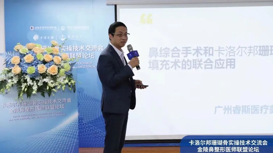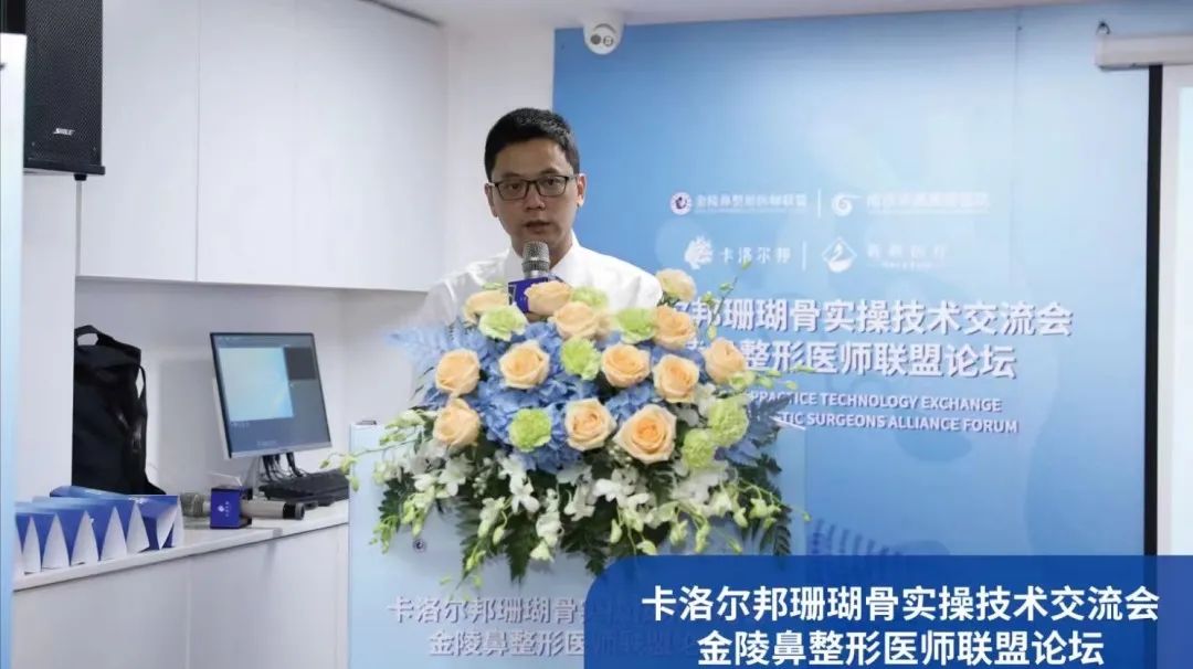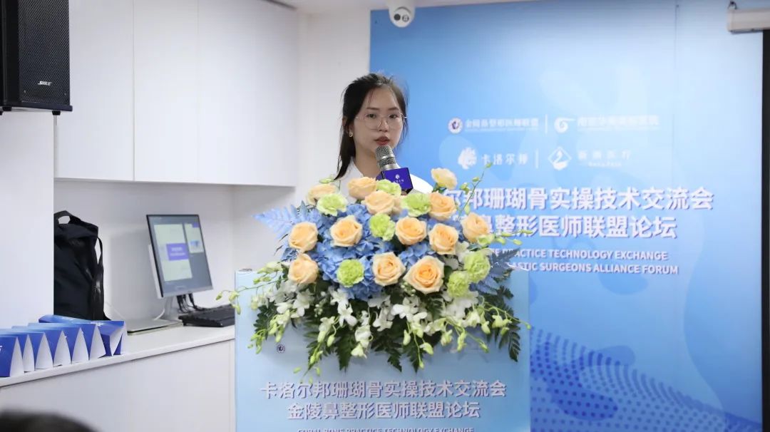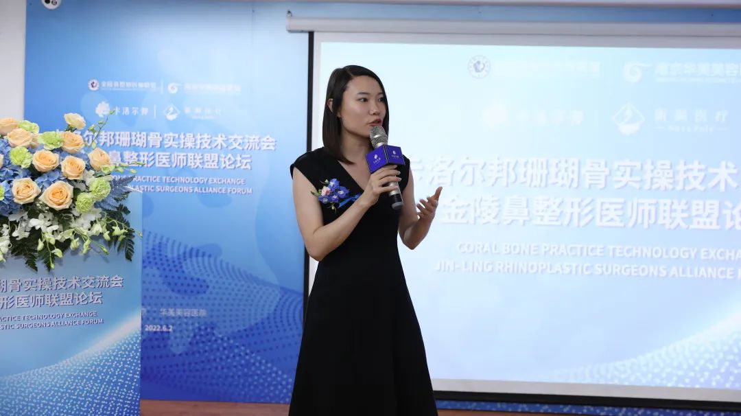 卡洛尔邦品牌方市场总监张八宝现场致辞,作为骨材料产品供应商,我们发现求美者开始关注骨性轮廓和全脸整体协调感,并更趋好于创伤小、恢复时间短的术式完成求美过程。当直面求美者需求时,我们需要将需求信息、材料、技术更好地整合传递出来,闺骨医疗科技乐于与业内多方携手合作,积极促成不同的对话与交流的机会与平台,共同推进骨整形技术的发展进步。