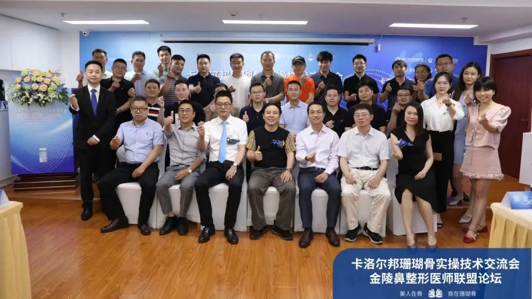 本次会议汇聚了江苏省中医院整形外科主任黄金龙教授、金陵鼻整形医师联盟发起人曹海峰院长、卡洛尔邦珊瑚骨·微创骨再生技术首席指导专家王旭彬院长、金陵鼻整形医师联盟核心成员晏义兵院长、刘卫院长、林金德院长等业内多位权威专家及数十位医界同仁。会议成功召开,成为国内鼻整形领域前瞻性学术交流,骨整形技术前沿展示与提升的重要里程碑之一。