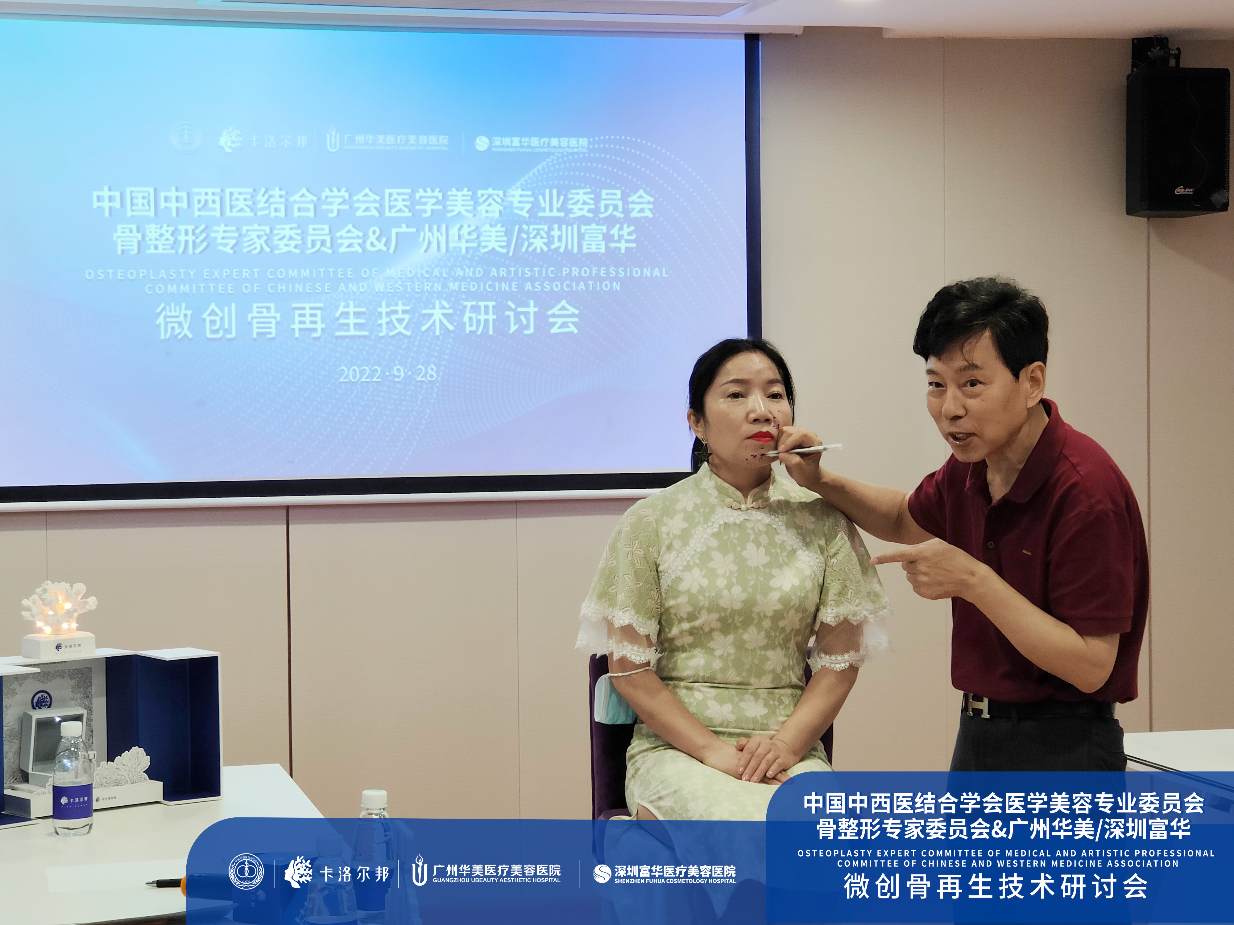 9月28日,中国中西医结合学会医学美容专业委员会骨整形专家委员会联合广州华美&深圳富华医学美容医院,在广州华美医疗美容医院共同举办“微创骨再生技术研讨会”。特邀中国中西医结合学会医学美容专业委员会骨整形专家委员会主任委员崔相平教授出席并作技术分享,广州华美医疗美容医院院长曾高教授、广州华美医疗美容医院总经理何健,广州闺骨医疗科技公司总经理张泽昂、广州闺骨医疗科技公司副总经理马高锋,以及业内优秀的整形医生们出席了本次研讨会。