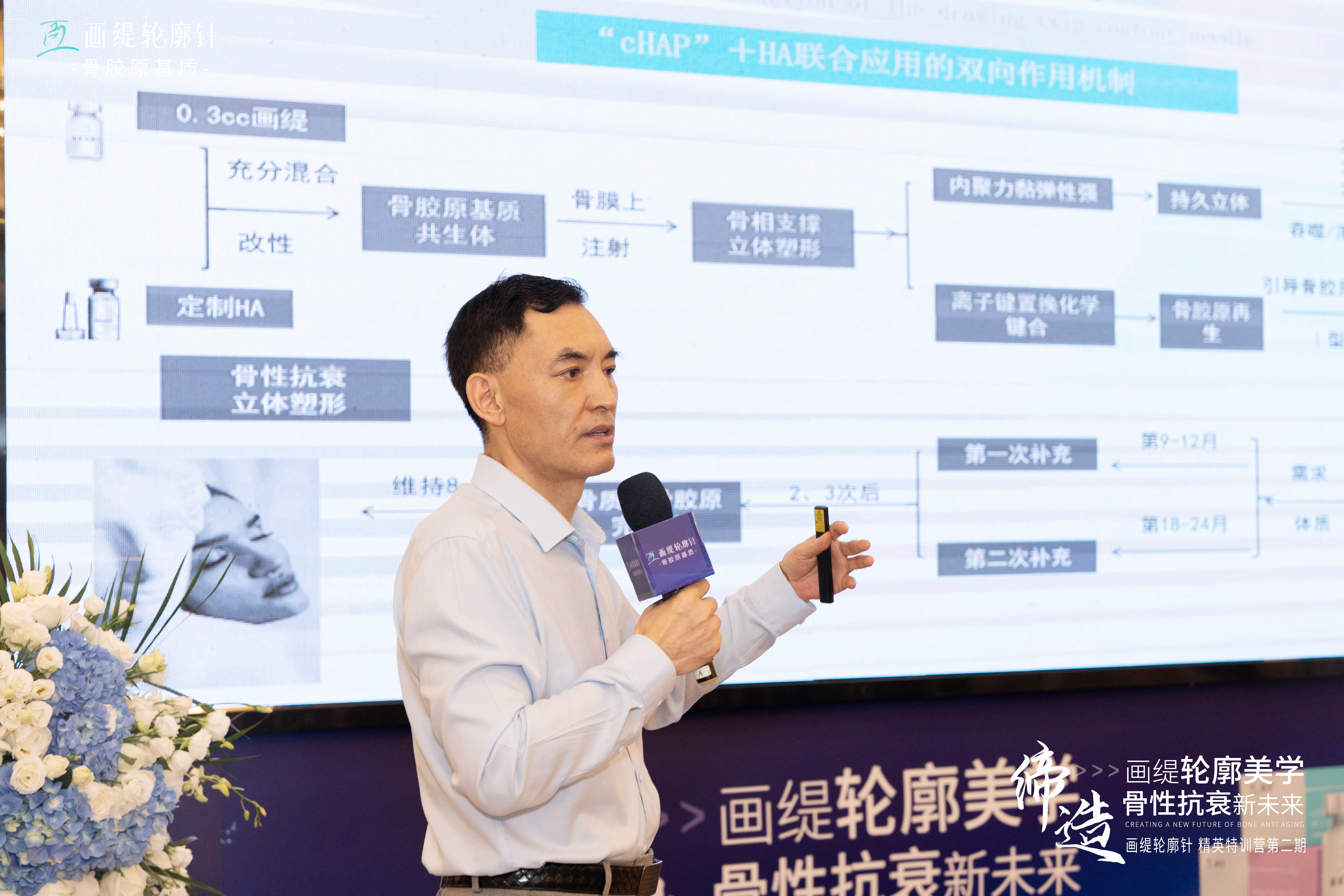孙中生教授在会议现场针对轮廓美学,骨性抗衰,以及画缇轮廓针临床注射SOP标准应用展开多维度学术交流。孙中生教授表示,自己一直以来都在密切关注着再生医学在医美领域的应用,同时也在积极实践关于再生材料在医学上的技术钻研,让求美者实现自然灵动,美在真我的自然年轻态。