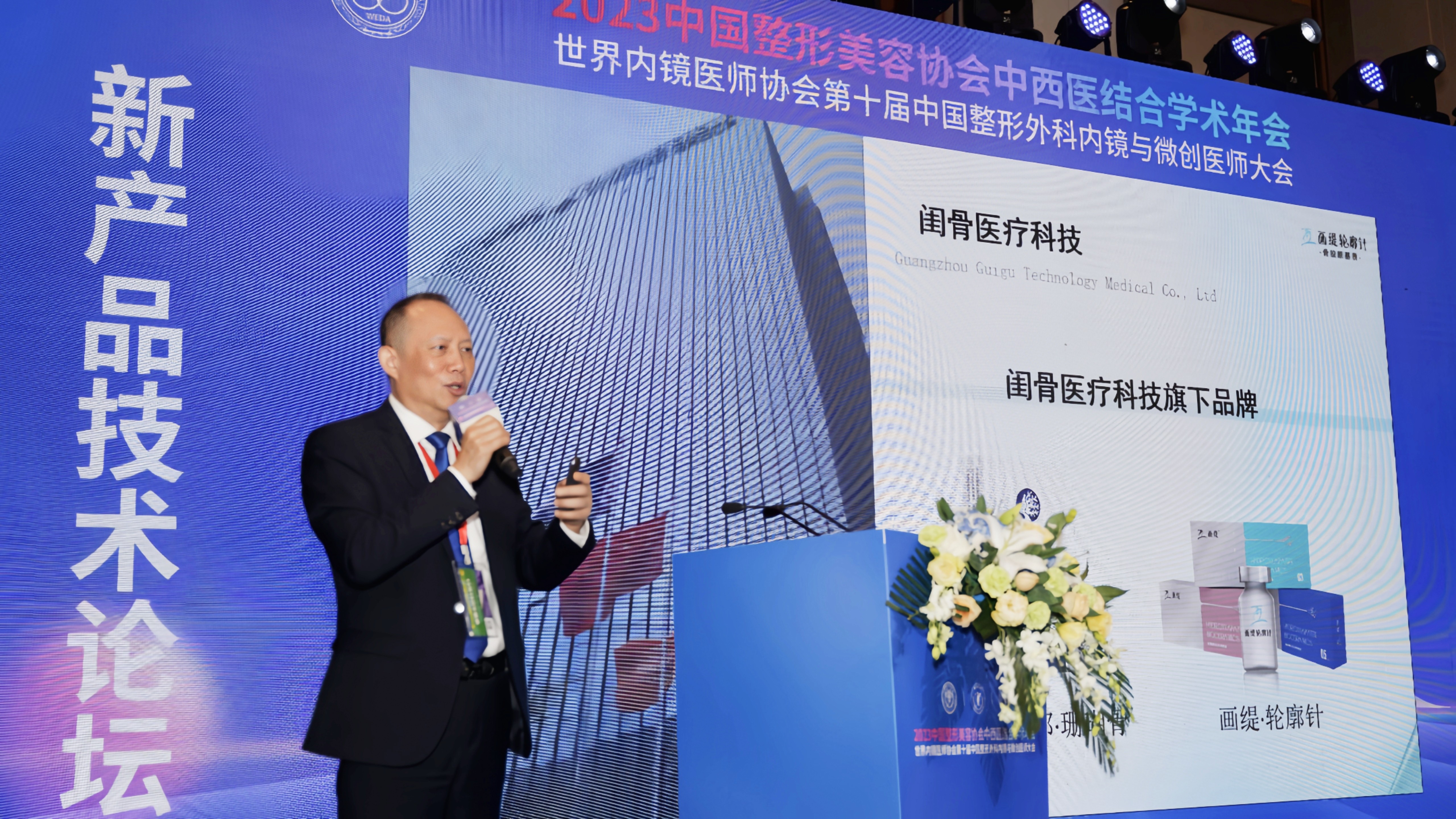 本届年会新产品技术论坛,中国中西医结合学会医学美容专业委员会主任委员黎冻教授现场分享课题《画缇轮廓针深度讲解》,黎教授首先分享了东方骨相审美与轮廓审美的趋势,接着结合画缇骨胶原基质的运用场景,详细解答在当下审美的需求升级下,如何运用画缇轮廓针进行“轮廓修容”进行详细分享。